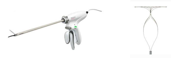 Harmonic HD1000i超声刀(左)、 PulseRider分叉部动脉瘤马鞍形弹簧圈栓塞辅助支架(右)